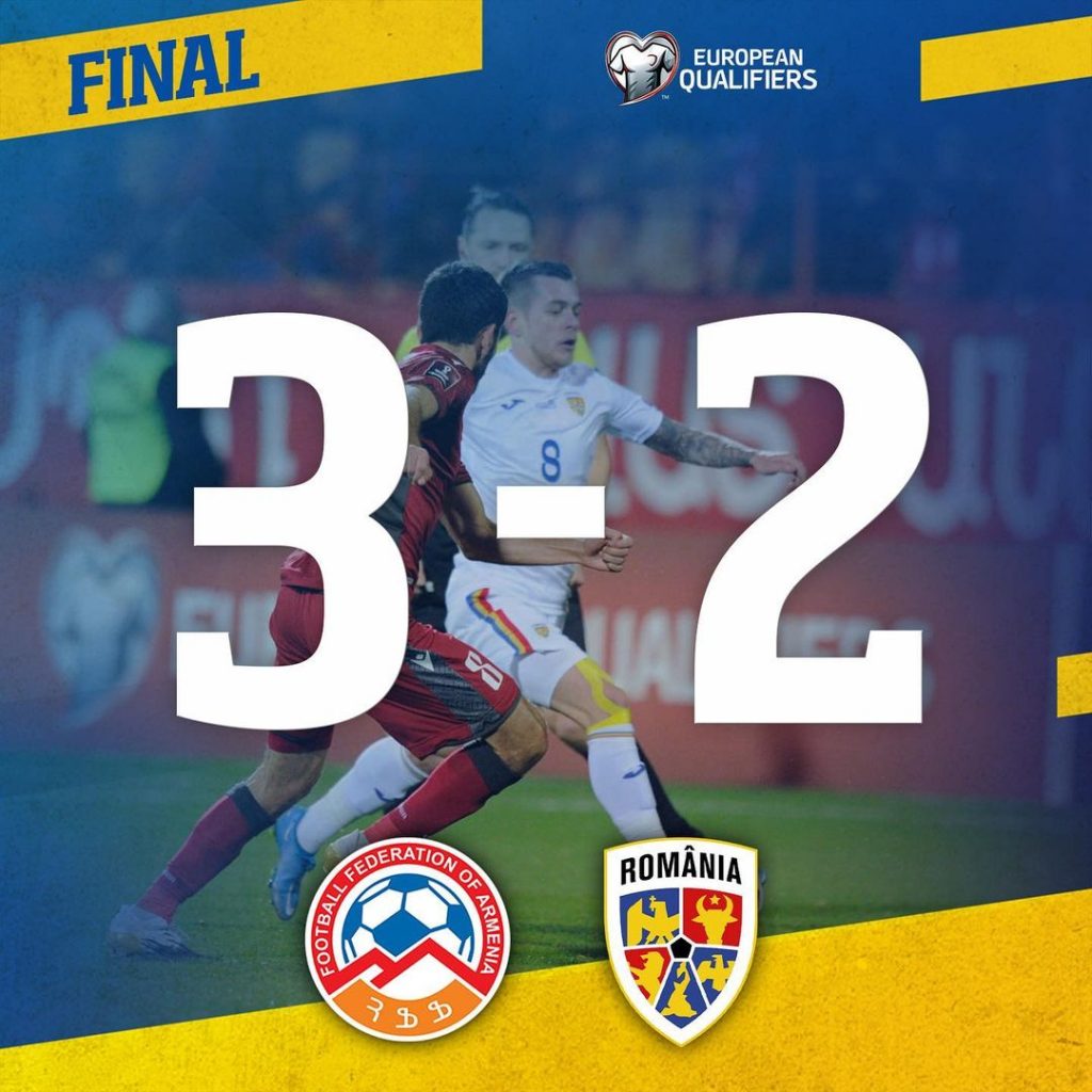 ARMENIA – ROMÂNIA 3-2 (Spertsyan 56′, Haroyan 87′, Barseghyan 89′-pen. / Cicâldău 62′, 72′)