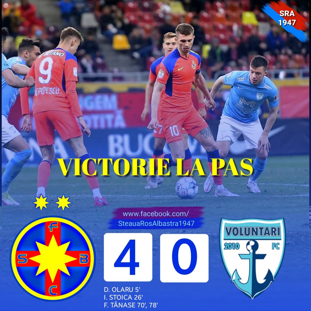 Steaua din Liga 1 s-a impus la pas în meciul cu FC Voluntari, grație travaliului și paselor lui Darius Olaru și Tavi Popescu. Roș-albaștrii au dominat jocul, însă nu în maniera categorică în care au făcut-o etapa trecută cu CSU Craiova.