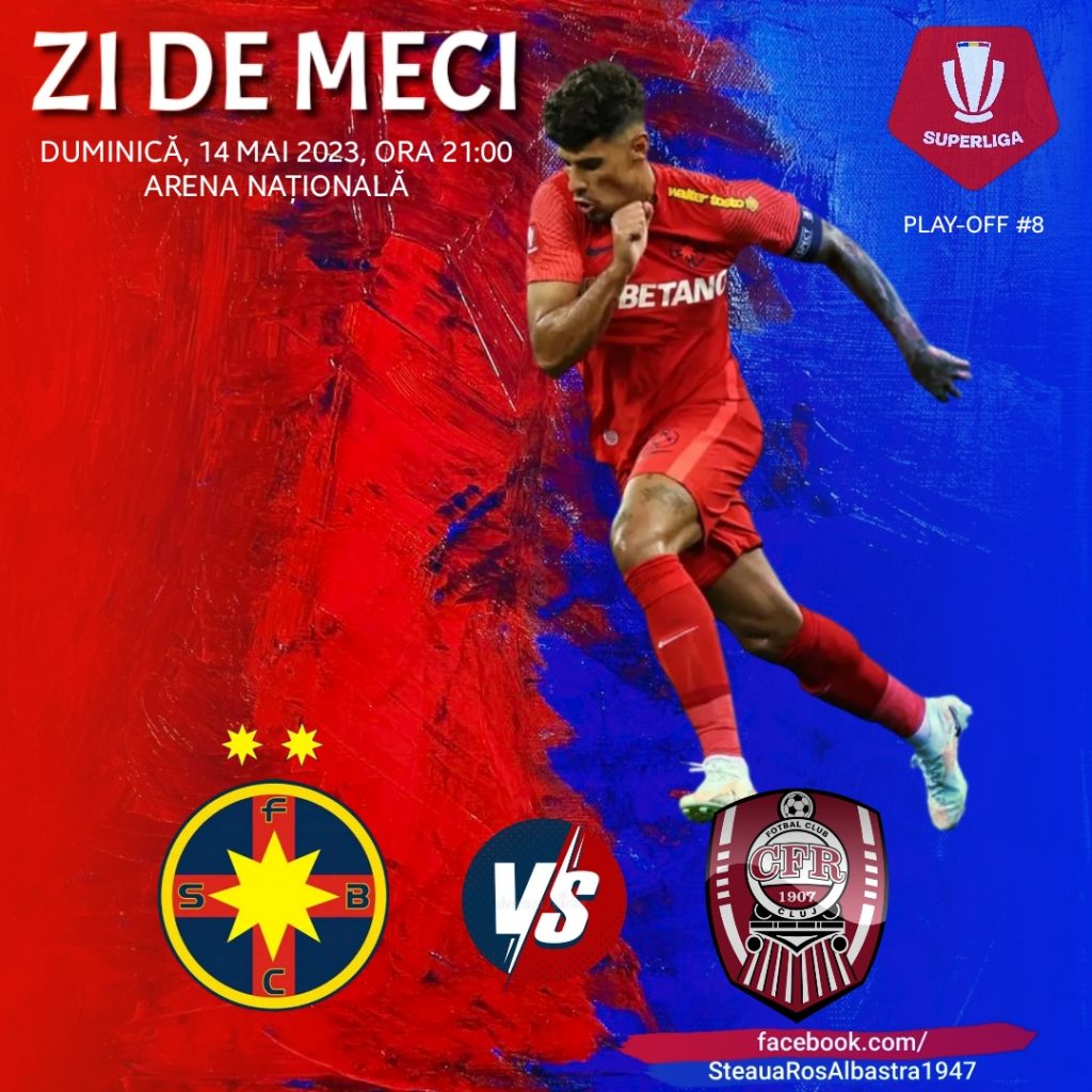 ⚽️?Meciul etapei cu numărul 8 din Playoff-ul Superligii între FC Steaua și CFR Cluj va avea loc duminică,14 mai 2023, ora 21:00, pe Arena Naţională. Partida va fi condusă la centru de craioveanul Sebastian Colțescu.