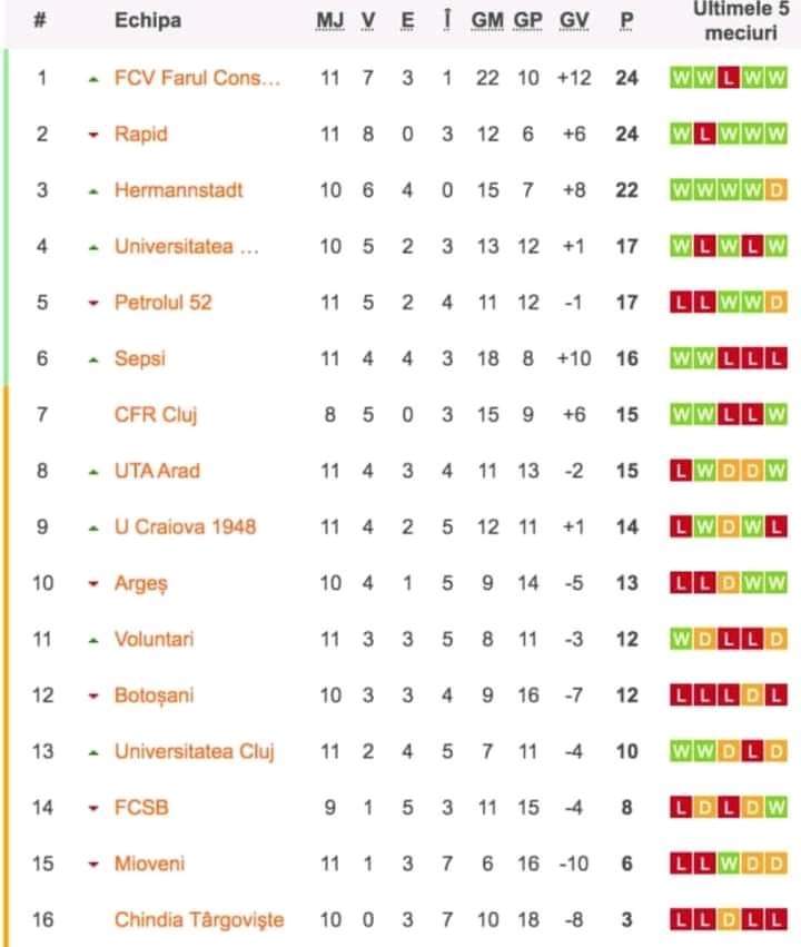 La egalitate de puncte, Craiova ia fata CFR-ului care are punctajul rotunjit.
