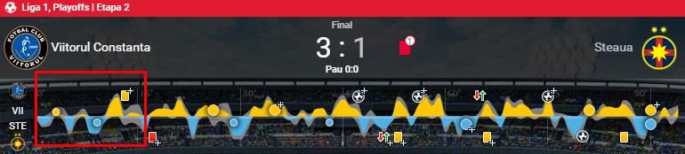 Alibec a redus din handicap în minutul 80, transformând impecabil o lovitură liberă de la marginea careului de 16 metri. Atacantul Stelei a avut golul în bocanc și în prelungiri, dar Rîmniceanu a avut o intervenție excelentă (’90+1). Nu a contat însă. Scor final 3-1!