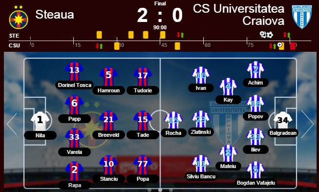 Steaua: Niță – Râpă, Varela, Carp, Toșca – Breeveld, Tahar – Popa, Stanciu, Hamroun – Tade