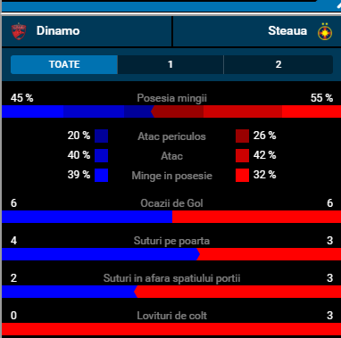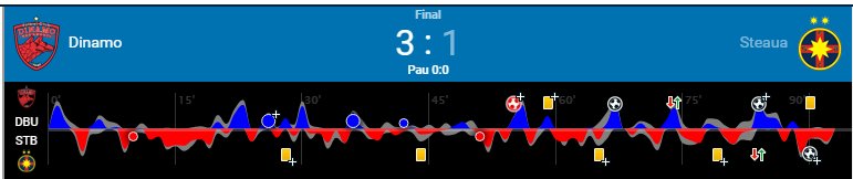 Statistica meciului confirmă dominarea jocului de către Steaua (zona hașurată) și că 3-1 e un scor „mincinos”