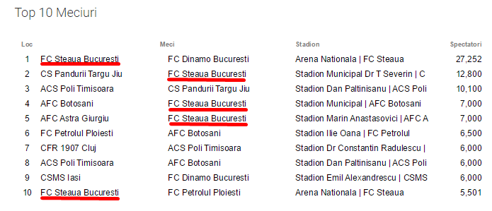 Articolul este o replică pe cifre la Steaua pe Arena Iraţională și  Sponsorul care salvează fotbalul și demonstrează că Steaua „părăsită acasă” continuă să domine topurile pentru că regresia spectatorilor de fotbal este un fenomen la nivel național.