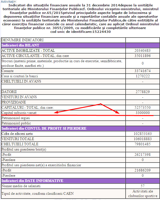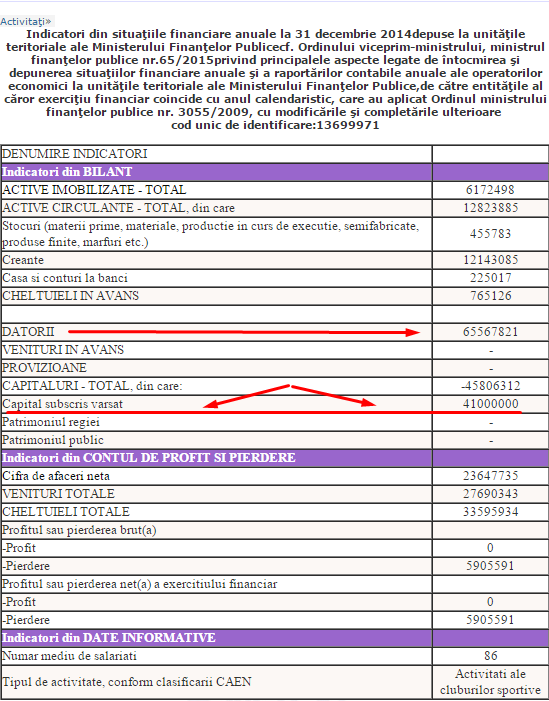 Compară cu Dinamo. Capital social peste 9 mil euro și datorii aprox. 15 mil euro.