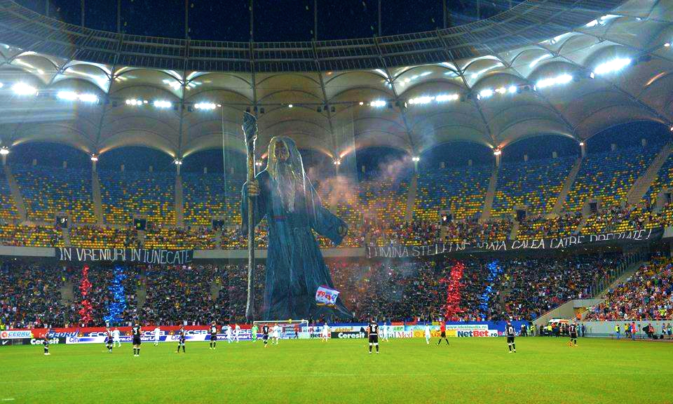 Fanii din Peluza „Roş-Albastră” s-au prezentat la derby cu o scenografie 3D. Personajul principal al scenografiei este Gandalf, celebrul vrăjitor din Lord Of The Rings. Acesta poartă straie roş-albastre şi nu îi lipseşte toiagul. „În vremuri întunecate, lumina Stelei ne arată calea către dreptate”, a transmis galeria FCSB-ului.