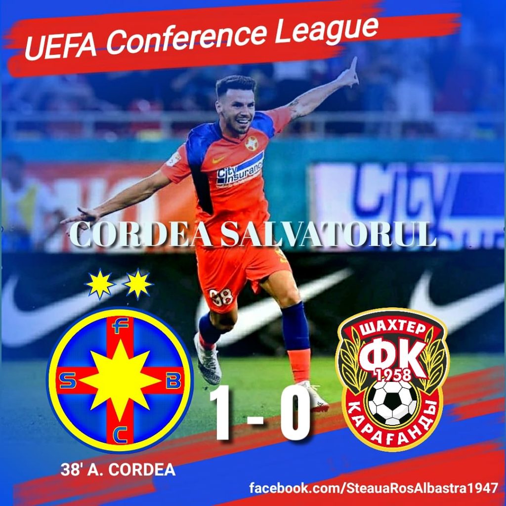 ?⚽️?FC Steaua București (FCSB) va juca împotriva celor de la Shakhter Karagandy, din Kazahstan, în turul doi preliminar din UEFA Conference League. Prima manşă a turului se va disputa pe Arena Națională, joi, 22 iulie 2021, de la ora 21:30, iar returul, o săptămână mai târziu, pe 29 iulie, în Kazahstan.