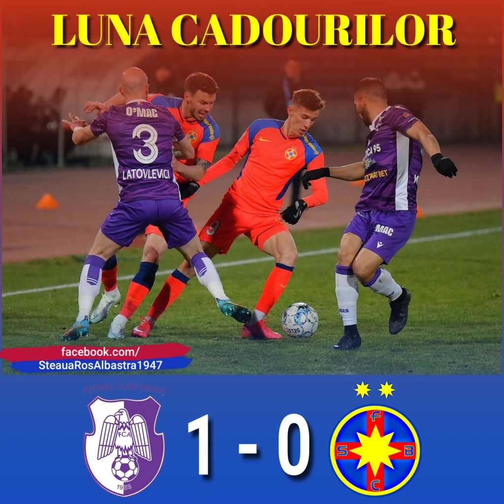 Cu toate că problemele medicale i-au scos din lot 8 jucători, după aspectul jocului și ocaziile de gol, FC Steaua a pierdut nemeritat la Pitești. Grație unui cadou marca Andrei Vlad, FC Argeș a luat 3 puncte de aur în lupta pentru un loc în Play-off.