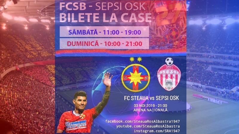 Meciul de fotbal FC Steaua (FCSB) – ACS Sepsi OSK Sfântu Gheorghe va avea loc duminică, 3 noiembrie 2019, în etapa a 15-a a Ligii 1, pe stadionul „Arena Naţională” din București, de la ora 21:00. Partida va fi televizată de Telekom Sport 1 HD, Digi Sport 1 HD şi Look Sport/Plus.