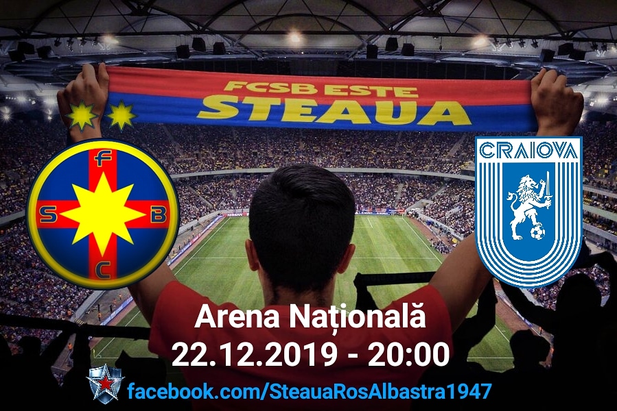 ?⚽️?Meciul de fotbal FC Steaua (FCSB) – CSU Craiova va avea loc duminică, 22 decembrie 2019, în etapa a 22-a a Ligii 1, pe stadionul „Arena Naţională” din Bucureşti, de la ora 20:00. Partida va fi televizată de Telekom Sport 1 HD, Digi Sport 1 HD şi Look Sport/Plus. Este ultima etapă care se mai dispută în anul 2019!