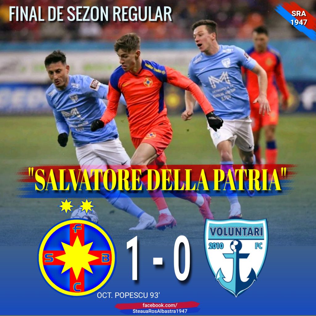 Steaua – Voluntari 1-0 (0-0), gol marcat de Oct.Popescu in ultimele farame ale timpului suplimentar.