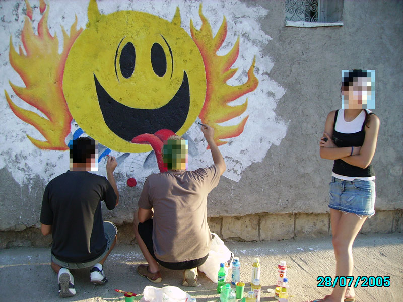 Pentru cei ce isi amintesc articolul publicat acum ceva vreme sub titlul "Astept 22-ul sa renovez cartierul", Cristi Alexandru are o veste buna: cartierul a fost renovat, micile opera de arta ros-albastra putand fi vazute de toata lumea.