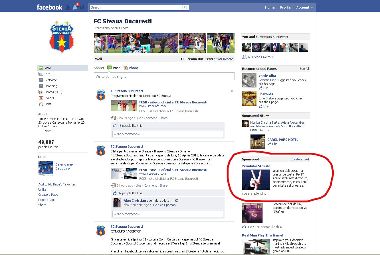 Tot prin intermediul facebook, suporterii au promovat evenimentul prin cumpararea de reclama. Astfel, tinerii intre 18 si 35 de ani care au declarat ca sunt suporteri stelisti au primit mesaje pentru a participa la eveniment, chiar cand intrau pe pagina oficiala a echipei Steaua.