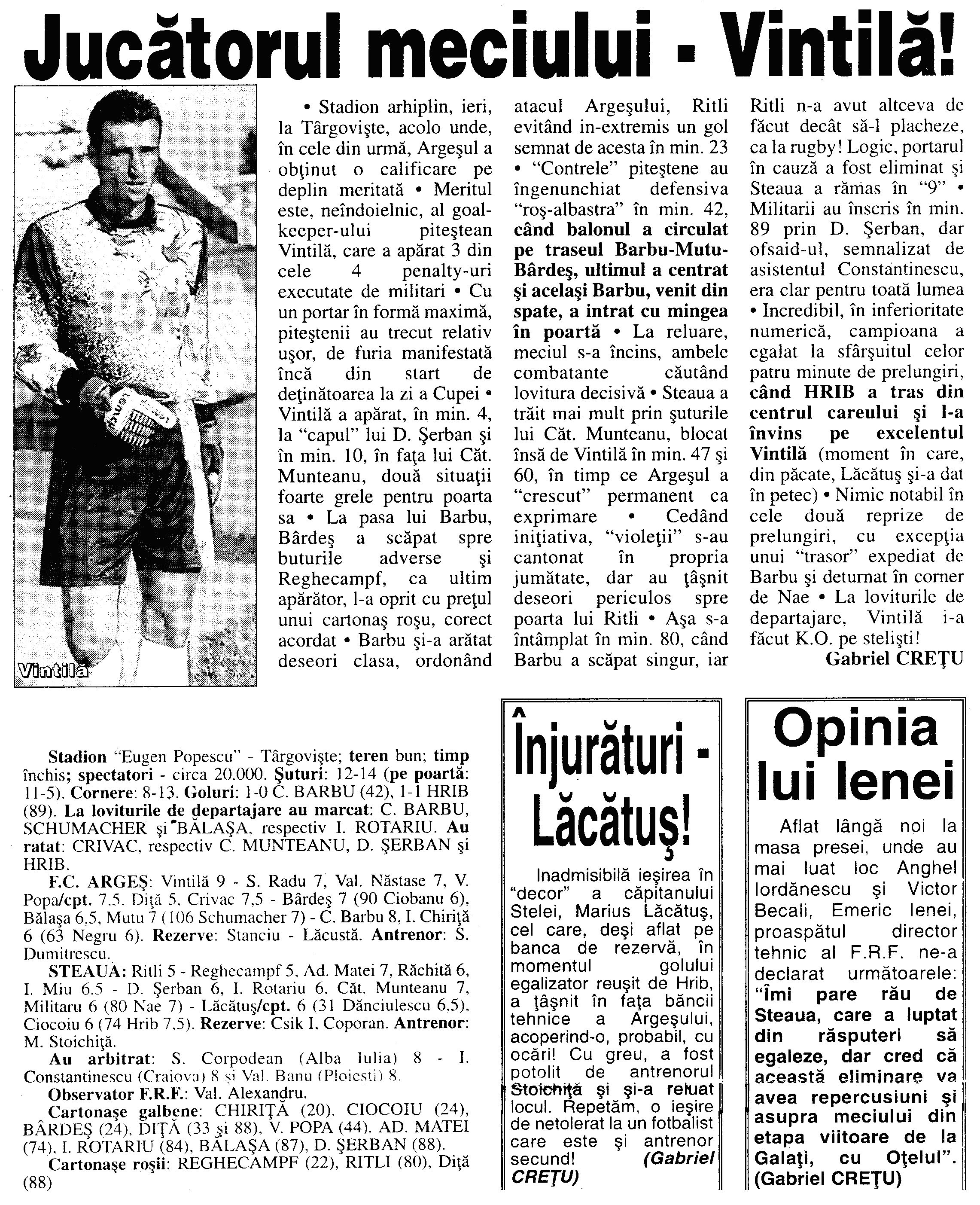 1993-1994: optimi: Arges Pitesti – Steaua: 4-3 la pen. (0-0;0-0)