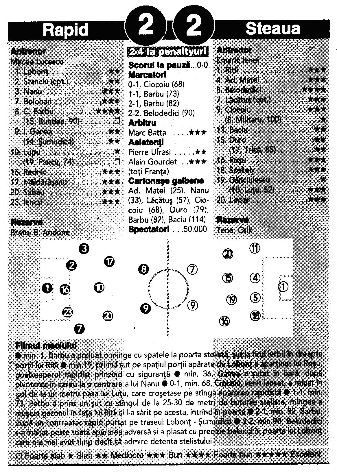 1998-1999: Steaua – Rapid: 4-2 la pen. (0-0: 2-2)