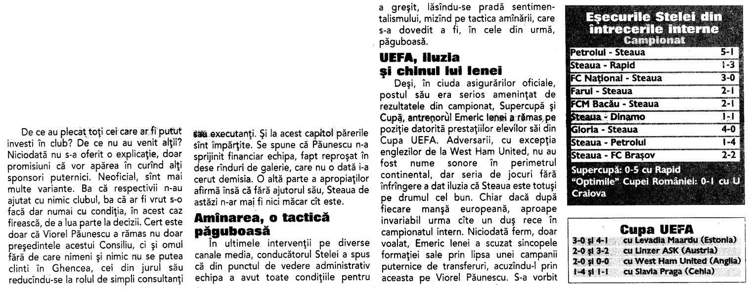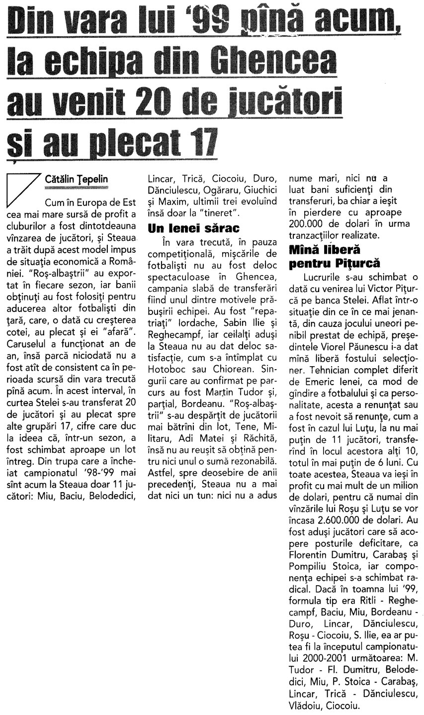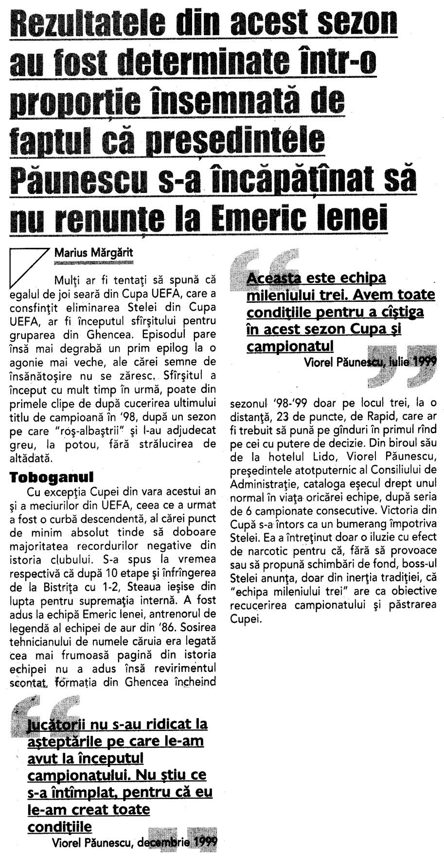 - rezultate mediocre (totusi, Steaua s-a clasat pe LOCUL 3 atat in 1999 cat si in 2000)