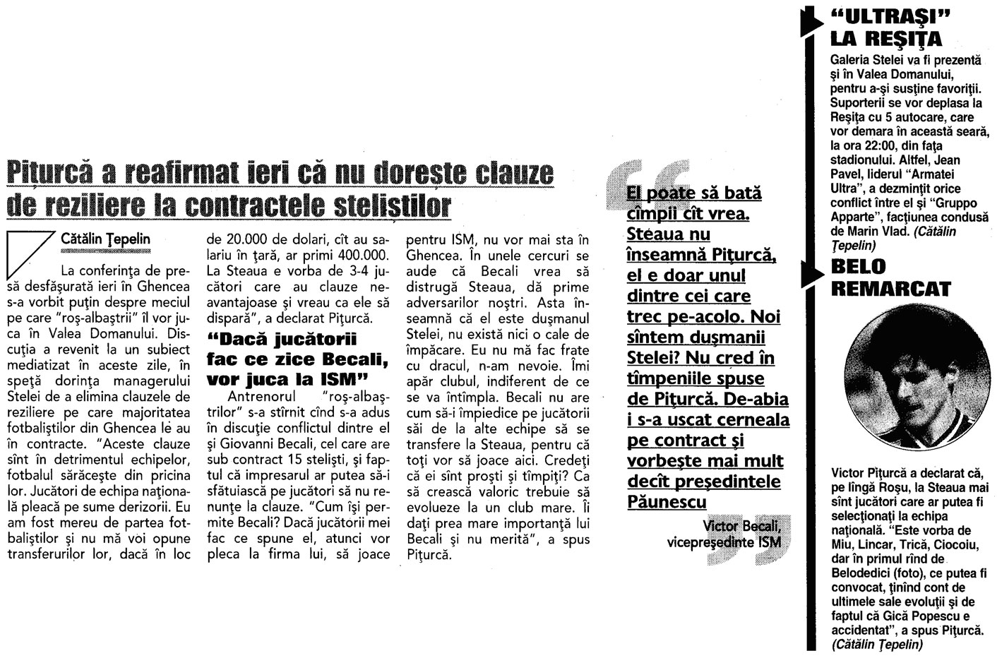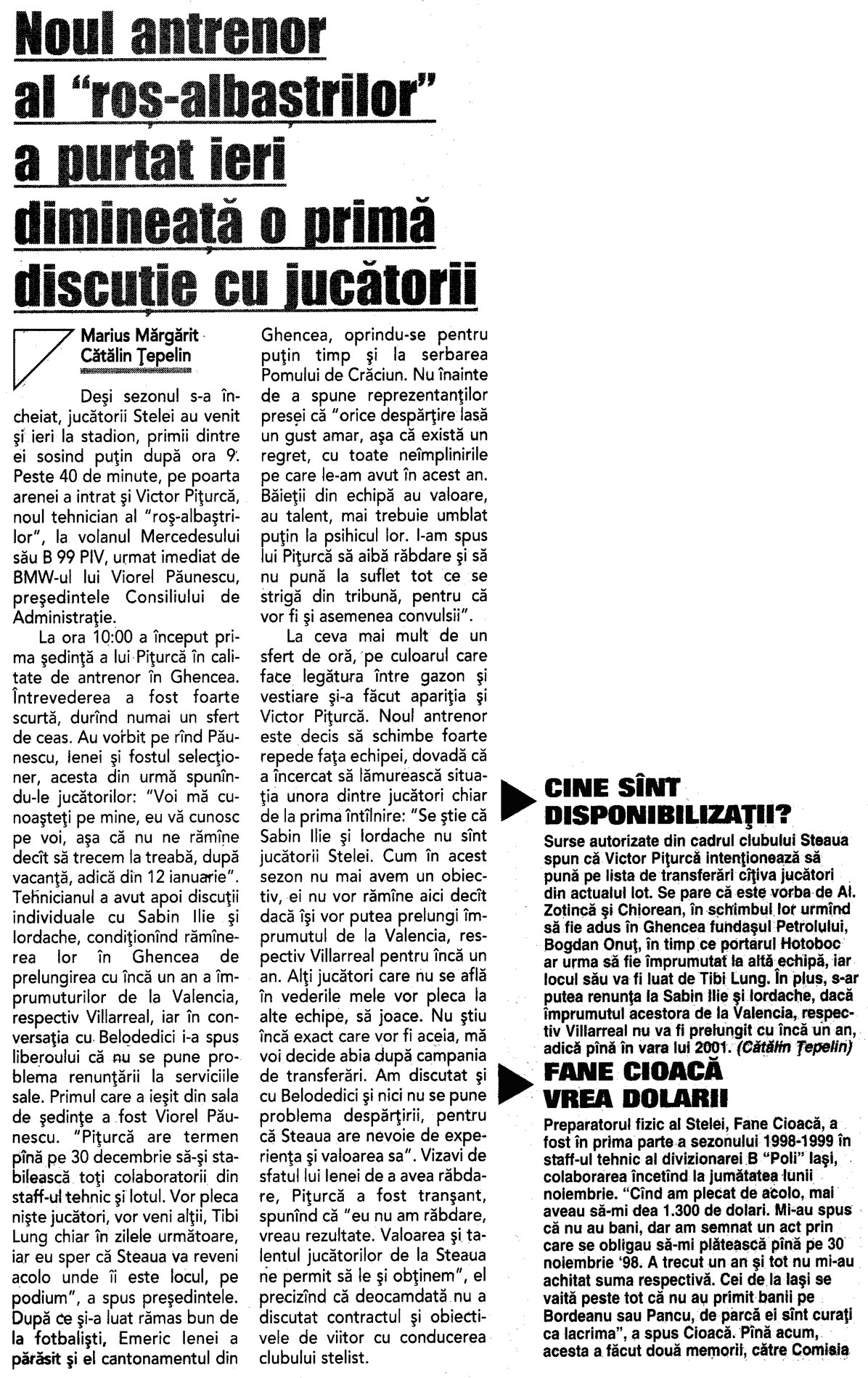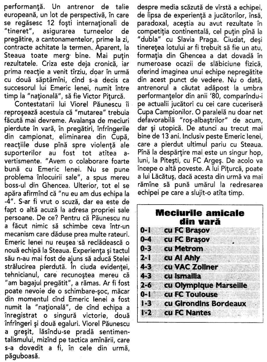 - rezultate mediocre (totusi, Steaua s-a clasat pe LOCUL 3 atat in 1999 cat si in 2000)