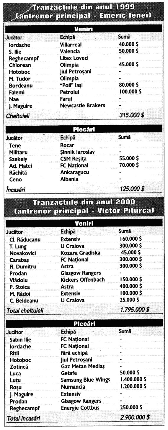 - zeci de jucatori veniti ca vedete si plecati urgent fie pe bani buni (cativa), fie fara sa confirme (majoritatea).