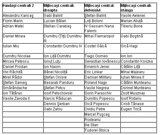 Rezerve:Zapata, G.Alves, D.Goian, G.Balint, L.Boloni, I.Danciulescu, I.Rotariu