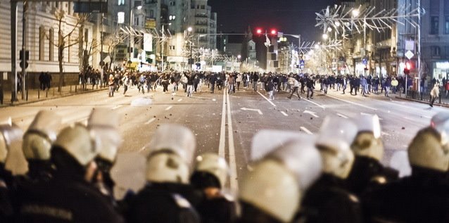16-01-12 Proteste la persoana I: tinerii adormiti arunca cu pietre. We are fucking angry!Cine-s huliganii, cine-s nenorociții, cine a devastat centrul Bucureștiului? Aseară am nimerit în mijlocul luptelor de stradă, m-am ferit de bolovani, am înghițit o canistră de gaz lacrimogen, am fugit de jandarmi, era să fiu linșat de niște cetățeni. Și am descoperit cu stupoare răspunsul: sunt chiar “generația adormită”, tinerii apatici, ăia care o ard prin cluburi și salvează lumea cu un like. De data asta au salvat-o agitând pumnii spre jandarmi, ridicând baricade și aruncând bucăți de borduri.Sună ciudat, după ce auzim pe toate canalele că e vorba doar de niște huligani, ultrași, puși de dracu’ știe cine să strice frumusețe de protest pașnic. Primele lupte au fost provocate, într-adevăr, de un astfel de grup. Atunci jandarmii au intrat în ei și i-au împins spre Piața Unirii. Și s-a petrecut ceva bizar. Pe la 9.30, o rumoare străbătea Piața Universității. Cică la Unirii e adevăratul scandal, acolo e pizdeala cu jandarmii. N-aveam nici un chef de asta, mi se părea un protest ultra-obosit și manipulat, dar ceva m-a împins spre locul ăla. Și nu eram singur. O mulțime de grupulețe se desprind din masa strigătoare de Jos Băsescu, trec prin pasaj și se unesc într-un torent de oameni alimentat de pe toate străduțele Centrului Vechi. Pe la lupoaică nu mai putem trece, e un cordon de jandarmi. Un tip stă în fața lor și le strigă-n caschete: “Băi, eu nu ieșeam dacă aveam cu ce s-o hrănesc pe fiică-mea!” Ocolim pe străduțe, unde-i plin de polițiști locali foarte chill, și găsim o breșă abia pe la Hanul lui Manuc. “What the fuck?!” Când ajung la Unirii rămân paralizat și mi se face pielea de găină. În mijlocul străzii sunt două focuri mari, în depărtare se ridică o coloană de fum, dinspre mcdonalds se aud bubuituri ca la bombardament și, oh, țipetele îngrozitoare… O trupă de jandarmi costumați ca țestoasele ninja trec în fugă pe lângă mine. În stația lor strigă unul să intre în nuștiuce poziție de luptă în față la H&M… Băi, ești nebun? În București?! Văzusem prin Londra chestii din astea, dar aici? “What the fuck?!” urlă unul de pe trotuar, oglindindu-mi gândurile. O rup la fugă în urma jandarmilor, trecem pe lângă al doilea foc, unde fac un mic ocol ca să dea niște pulane pe spate unora care traversau strada, apoi se unesc cu altă trupă și fac un rând pe toată strada în fața magazinului Unirea. Pornesc spre Tineretului bătând cu pulanele în scuturi. La ieșirea din pasaj îi întimpină pietrele. Niște băieți cu fulare pe față ies de după un bloc și bombardează. Ei răspund cu două focuri de gaze lacrimogene și câteva artificii care aruncă scântei în toate părțile, feeric, ca la revelion. Deci astea erau bubuiturile, mă gândesc ușurat, dar nu apuc să duc gândul până la capăt că trebuie să mă bag pe după o mașină, să nu mă ia noul val de pietre. “We are fucking angry!” Jandarmii se retrag. La o sută de metri de ei, în față la millenium bank, câțiva băieți devastează stația de autobuz. Sparg toate geamurile cu niște lemne groase. Dacă i-ai vedea pe stradă, mai că le-ai cere meditații la matematică. Ochelari, păr frumos pietănat, helănci vintage, haine de ieșit la terasă. Fugăriții din toate colțurile pieței profită de retragerea jandarmilor și se strâng în intersecția de la mcdonalds. Gonesc cu pietre și ultima mașină de jandarmi, apoi izbucnesc în urale care țin minute-n șir. Arafat! Libertate! Jos nenorociții! Parcă sunt hipnotizați, se plimbă zâmbind, ca la revelion. Sunt vreo 300 de oameni.Hipsteri, cocalari, roacheri dubioși, lumea pestriță pe care o vezi de obicei pe Lipscani. Ei sunt publicul țintă al companiilor, consumatorii ideali. Doar că acum nu mai consumă, ci distrug. “We are fucking angry!” strigă unul când mulțimea pornește înapoi spre Universitate, adunând provizii de pietre de pe jos. “Lasă pozele, ia o piatră!” În mulțime intră și o ceată de squatteri de la clădirile din jur, ofticați că au mâncat bătaie de la jandarmi mergând liniștiți pe-o străduță. I-au văzut că-s țigani… Iar în prima linie sunt mult-huliții ultrași, vreo 10 oameni la prima vedere. Nu i-ai recunoaște după haine, că și eu am geacă neagră și fes pe cap și fularul tras pe nas să mă apăr de lacrimogene. Dar se vede că sunt mai organizați, știu cum se mișcă jandarmii, sunt singurii cu experiența confruntărilor. La intersecția cu strada Colței dăm peste jandarmi. Tocmai se băteau cu unii și când au văzut mulțimea s-au retras în fața spitalului. Au făcut un cordon lung cât toată strada și ne întâmpină cu două canistre de gaz și niște artificii superbe. Băieții ripostează cu pietre și se apucă să construiască baricade. Gardurile dintre benzile bulevardului se umplu, unul câte unul, cu un ciorchine de flăcăi care le hâțână până când cad, apoi le aruncă în baricade ca într-un baraj de castori. “Inculții ăștia au pus jandarmii pe noi!” Cei mai din spate găsesc alte activități recreative. Un tip scrie cu șprei de vopsea neagră o LIBERTATE mare cât toată strada. O fată cu desagă “Hello Kitty” mai are puțin și izbucnește în plâns când îi spune prietenului “Ăsta nu pleacă, mă, orice-am face!” În spatele lor, un tip îmbrăcat elegant, cu o plăsuță în mână, ridică o piatră colțuroasă și o mângâie în pumn, îi cercetează textura, de parcă ar fi un obiect extraterestru. Câțiva băieți discută politică. “Ăștia n-au pic de cultură, mă, inculții ăștia au trimis jandarmii pe noi!” Arată fix ca studenții care au ocupat Facultatea de Istorie cu ceva timp în urmă. Cu toții călcăm pe un covor de flegme, la care contribuim cu sârg de fie