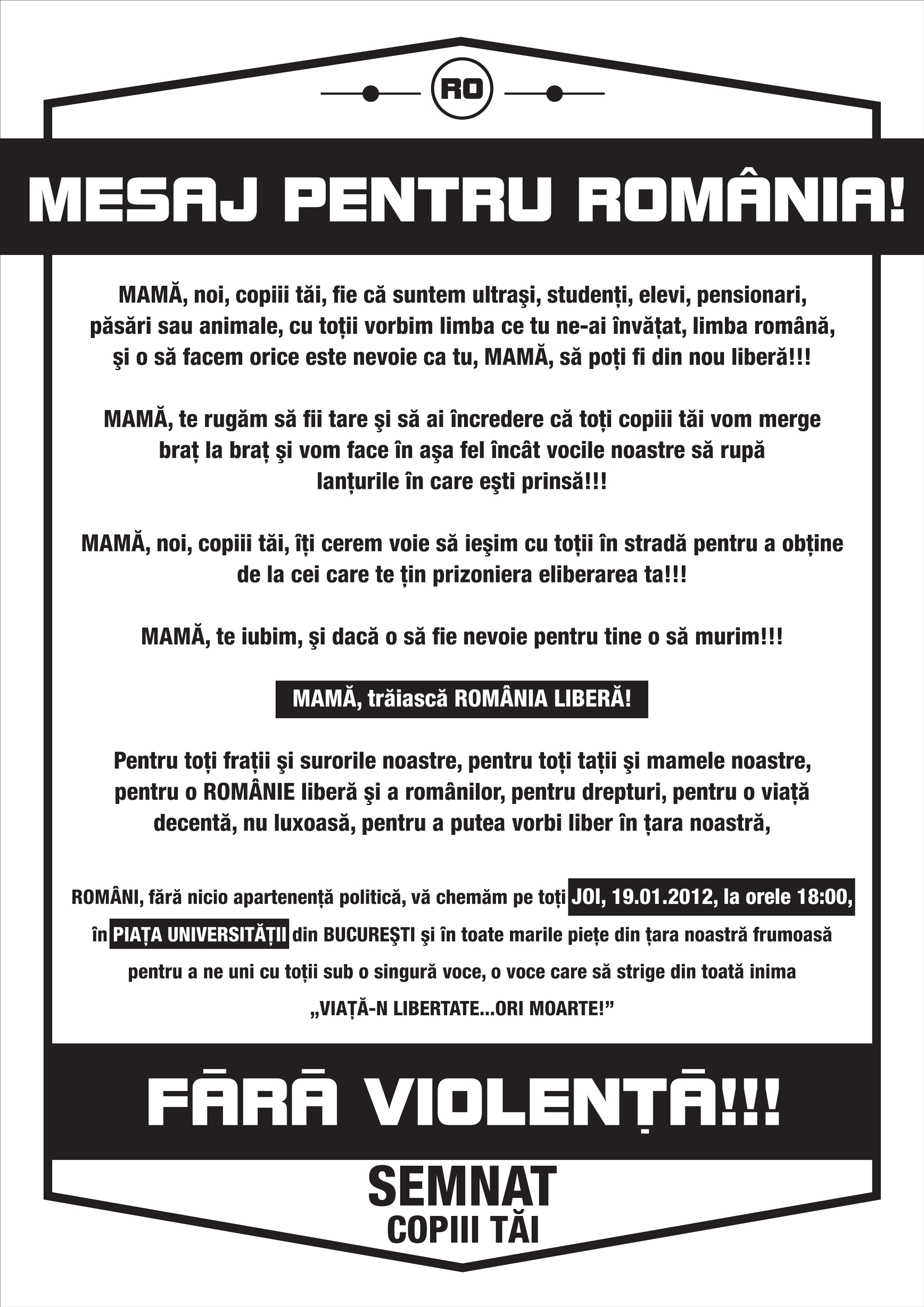 Mesaj pentru Romania!