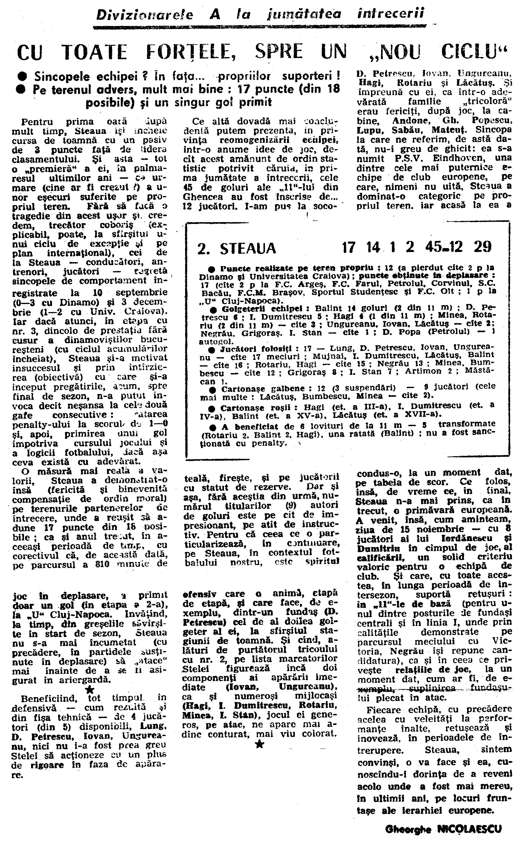 Transformările prin care a trecut Steaua în acest tur al sezonului 1989-1990 sunt surprinse fidel de analiza venerabilului Gheorghe Nicolaescu, cifrele conturând convingător titlul-concluzie. Recomand lectura.