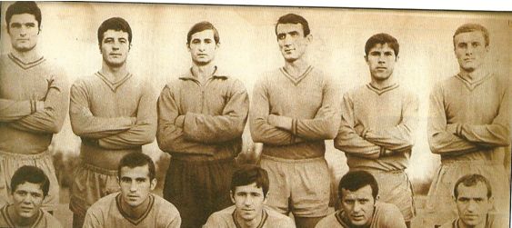STEAUA 1968-1969: Sus, de la stânga la dreapta: Sătmăreanu, D. Nicolae, Suciu, Hălmăgeanu, Negrea, Vigu; Jos: Tătaru II, Dumitriu III, Fl. Voinea, D. Popescu, S. Avram