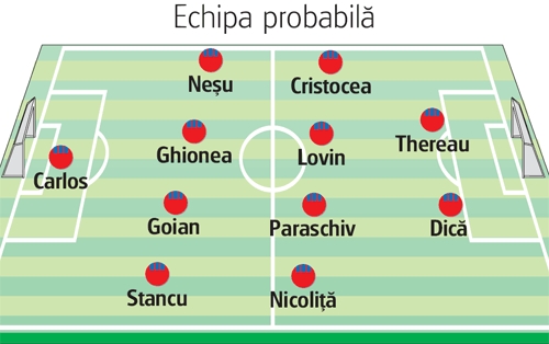 Thereau si Stancu titulari? (GSP)Olãroiu intenþioneazã sã-i utilizeze pe cei doi, preferîndu-i lui Badea ºi Saban Roº-albaºtrii au efectuat ieri dupã-amiazã ultimul antrenament înainte de plecarea la Kiev. Cosmin Olãroiu a avut la dispoziþie aproape tot lotul, în afara accidentaþilor mai vechi Rãdoi ºi Victoraº Iacob, ceilalþi jucãtori pregãtindu-se normal. Antrenorul steliºtilor ºi-a fãcut deja o ideea asupra formulei cu care va începe partida de miercuri, singurele dubii avîndu-le în cazul fundaºului dreapta ºi al vîrfului împins. Oli înclinã sã-l titularizeze pe dreapta pe Stelian Stancu, cu care a început ºi meciul de la Piteºti, deºi Klemi Saban are mai multã experienþã internaþionalã. "Am jucat cu Stancu titular pentru cã, dacã voi avea nevoie de el la Kiev, sã aibã cel puþin un joc alãturi de Nicoliþã pe partea dreaptã", s-a confesat Oli unor apropiaþi dupã meciul cu FC Argeº. În ceea ce priveºte atacul, Olãroiu e înclinat sã-l prefere pe francezul Thereau, care a avut o evoluþie apreciatã la debutul sãu oficial la Steaua, demonstrînd cã se poate integra rapid în echipã. Fotbalistul francez a arãtat o foarte bunã dispoziþie la efort. Surse autorizate au povestit cã în timpul meciului de la Piteºti, Thereau l-a sfãtuit pe Dicã sã se concentreze asupra paselor, pentru cã el poate face singur pressing între cei doi fundaºi ai piteºtenilor. În cazul în care francezul va fi titular, va rãmîne pe bancã Vali Badea, jucãtorul decisiv în returul cu Standard. Neºu este apt Dupã ce la finalul antrenamentului de duminicã a acuzat stãri de vomã ºi ameþeli, Mihãiþã Neºu s-a antrenat ieri cu echipa ºi este disponibil pentru partida de miercuri. "Neºu nu mai are nici o problemã medicalã. El a fost la spital cu doctorul Paligora pentru a fi sigur cã nu e ceva mai grav, dar s-a dovedit cã nu este nimic", a declarat MM Stoica. |