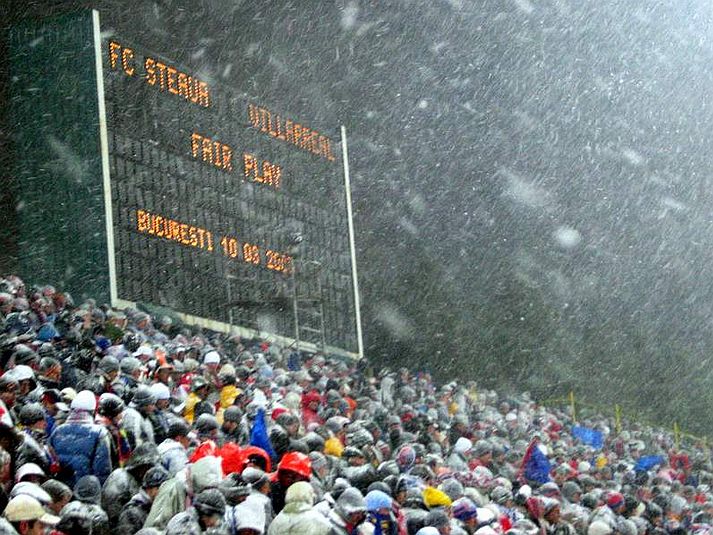 Am vazut in sezonul trecut de Europa League in ultima faza a grupelor niste ninsori similare la o gramada de meciuri si s-au jucat toate...Gent - Levski, Lech - Juve, Rapid Viena - Porto, Odense - Getafe, Young Boys - Stuttgart. Se mai faceau din cand in cand pauze sa curete anumite zone.