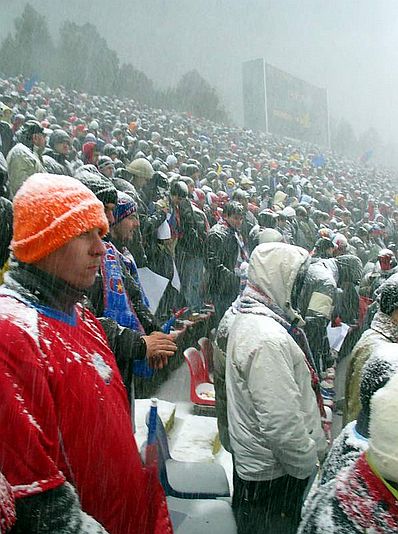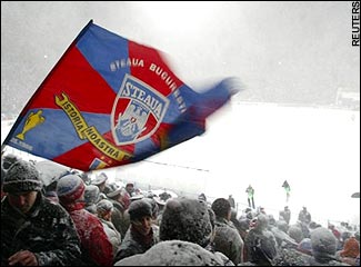 7 ani de la dogoritorul Infern Alb, de la Steaua - VillarrealData de 10.03.2005 este o zi de neuitat pentru mine. O zi în care am trăit unul dintre cele mai emoţionante momente în calitate de suporter.Ziua începuse plăcut, însorită, cer curat, adiere plăcută. Plecasem mai devreme de la liceu fiindcă era o zi ce putea fi pierdută. Nu-mi părea rău. Eu şi Fănel , un prieten din adolescenţa mea , ne luasem bilet pentru meciul de Cupa UEFA : Steaua Bucureşti vs. Villarreal C.F. Am aşteptat entuziasmaţi trecerea orelor până la plecarea spre stadion , aveam o emoţie care nu se poate descrie în cuvinte când vine vorba să păşim pe gradenele stadionului din cartierul Ghencea. Ne-am urcat în maşina tatălui său , ne-am echipat cu aparatul de fotografiat , steag , eşarfă şi fular , fiind foarte atenţi să nu ne uităm acasă glasul , cel ce era cel mai important pentru a susţine echipa. Un amănunt minor uitasem să verificăm : prognoza meteo. Fiind primăvară , se întuneca destul de devreme , ceea ce a făcut ca din ziua însorită să trecem într-o seară înnorată şi rece , fără ca noi să observăm , fiind cu gândul doar la meci. Rece doar când vorbim despre meteorologie , fiindcă Ghencea era un Vulcan! Înnorată doar dacă puteai să priveşti dincolo de nocturna puternică a stadionului. Ne plăcea să ajungem devreme la stadion , aşa că încălzirea echipelor ne-a regăsit fix în tribună , aşteptând. Ceea ce nu luasem în calcul , ne-a lovit frontal. Începuse să ningă,dar ce ninsoare,ce vânt , ce fulgi , ce haine subţiri aveam pe noi! Doar eşarfa sau fularul cu Steaua ne mai acopereau. La fel ca şi zilele trecute , se abătuse o ninsoare de nu puteai să clipeşti. Nouă nu ne stătea gândul la fulgii de zăpadă , am fi sărit şi strigat şi de sub 2 metri de omăt. La fel şi restul de 25.000 de stelişti. 25.000 , cândva formând un singur glas. Steaua era ’’motorul’’ voinţei suporterilor ce au îndurat ore bune viscolul , în speranţa începerii unui meci ce avea să fie amânat. ’’Infernul alb’’ de pe Ghencea a făcut înconjurul lumii şi rămâne şi astăzi aprins în gândurile multor stelişti. Am şi făcut o fotografie Peluzei SUD ( o vedeţi mai jos ) , de colecţie , zic eu , ce afişa o superbă coregrafie cu tricolorul românesc şi emblema Stelei. O fotografie făcută cu un aparat vechi , cu film , fotografie ce stă bine în albumul cu poze . Am fost şi sunt mândru de respective , aceasta aducându-mi un bilet cadou la meciul Steaua vs. Rapid , din sferturile Cupei UEFA , un sezon mai târziu , prin intermediul unui post de televiziune. Au trecut fix 7 ani , multe lucruri nu mai sunt la fel , stadionul poate nu va mai fi încărcat cu atât devotament niciodată , cel puţin aşa cum a fost pe 10.03.2005 , o noapte albă , de neuitat ! Becali ne-a furat tot ce aveam mai drag în fotbal , haideţi să nu-i mai permitem ! Blindica ![]() ![]() ![]() ![]() Suporterii Stelei lăudaţi de presa spaniolă EROII Vom fi cel putin la fel miercuri! Cu natura si cu STEAUA nu se poate pune nimeni! Pe Becali nu-l intereseaza problema biletelor FCSTEAUA.RO este un site deschis, facut de suporteri, pentru suporteri. Asteptam articolele scrise de voi, daca aveti ceva de spus si credeti ca o puteti face intr-un articol, nu ezitati!