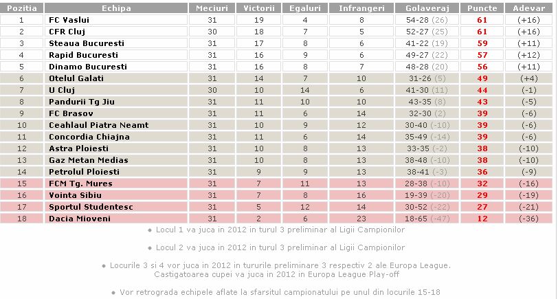 10-05-12 Steaua - Ceahlaul: 1-0 VIDEOSteaua a castigat iar cu fundasii, Novak Martinovic fiind autorul singurului gol al meciului cu Ceahlaul din Ghencea, in minutul 61. Cu aceasta victorie stelistii se apropie la doar doua puncte de fruntasele clasamentului.Pozitia din clasament a celor doua echipe si diferenta de puncte ar fi indreptatit pe oricine sa creada ca Steaua va avea un meci usor in Ghencea cu Ceahlaul. Realitatea din teren a fost insa alta. Ceahlaul a venit cu tema apararii bine pregatita si a blocat toate spatiile spre poarta lui Jovic. Astfel ca actiunile de atac ale ros-albastrilor au ajuns rareori la finalizare. Indiferent ca au atacat pe dreapta prin Gardos, sau pe partea stanga prin centrarile lui Parvulescu sau Tanase, stelistii au reusit in rare ocazii sa creasca nivelul emotiilor la poarta moldovenilor. Iar ce a trecut de defensiva nemtenilor, ori a ocolit poarta, ori a intervenit bine Jovic. De cealalta parte, nemtenii s-au vazut foarte rar in ofensiva si aproape deloc in preajma portii lui Tatarusanu, care nu a prea avut activitate in prima repriza. Portarul Stelei a fost insa serios intrebuintat la prima faza importanta a reprizei a doua, cand a respins cu mari emotii sutul lui Muscalu din marginea careului. Im minutul 61 stelistii i-au oferit o bucurie lui Mihai Stoichita de ziua lui si au deschis scorul. Chiriches a centrat in fata portii de pe dreapta, moldovenii au respins slab doar pana la Martinovic si fundasul si-a pus toata forta in sutul de la 12 metri trimis sub transversala. Jocul s-a deschis brusc. Moldovenii au iesit si ei mai mult la atac, Achim avand ocazia egalarii pe frunte in minutul 72, insa a trimis cu capul alaturi cu toata poarta la dispozitie. Un minut mai tarziu Nikolic putea majora avantajul gazdelor, dar muntenegreanul a fost blocat in ultima clipa de Jovic, chiar cand se pregatea de un sut lobat din 10 metri. Tanase a fost ultimul care a amenintat serios poarta adversa in minutele de final, ocazie care a fost urmata de un gest golanesc al unui jucator al Ceahlaului. Daniel Stana l-a lovit cu piciorul in cap intentionat pe Martinovic si nu doar ca a scapat de eliminare, dar n-a luat nici macar cartonas galben. Steaua: Tatarusanu - Martinovici, Iliev, Geraldo, Pârvulescu - Gardos (Rusescu '55), Chiriches - Tatu (Nastasie '85), Radut, Tanase (Matei '90+4) - Nikolici. Antrenor: Mihai Stoichita. Ceahlaul Piatra Neamt: Jovici - Dumitras, Ichim, Cazan, Vitelaru - Monroy, A. Achim, Onciu (Pavel '78), Stana - Muscalu (Badescu '57), Golubovici. Antrenor: Constantin Enache. Cartonase galbene: Tanase '35 / Cazan '28 Arbitri: Paul Unimatan (central) - Stelian Slabu, Petruta Iugulescu (asistenti) - Cristina Babadac (rezerva) Onlinesport: Irina Maxim Mihai Stoichita: "Le-am spus jucătorilor că vom câştiga foarte greu, din cauza asta am jucat cu 2 închizători. Am blocat bine. Mă aşteptam să avem mai multe ocazii din faze fixe. Am avut doi mijlocaşi care au jucat foarte bine. Le-am spus astăzi jucătorilor că nu trebuie să fie frumoşi, important era să nu ne desfacem. Trebuia să luăm trei puncte. La Braşov revin în echipă cei suspendaţi, plus că s-ar putea ca doctorul să mai recupereze pe cineva. Vom avea 4 - 5 "mâini" proaspete. Dacă vom lua titlul o să le pup toată viaţa fotografiile jucătorilor, înseamnă că au reuşit tot ce şi-au propus. Steaua nu e o grădină zoologică (n. red. - despre sarpele gasit miercuri in patul lui Mihai Radut). Să nu uităm că stadionul ăsta a fost părăsit mult timp". Novak Martinovic: "A fost un meci foarte greu, dar merităm să luăm aceste trei puncte. Trebuie să fim sinceri, nu am jucat bine, dar Steaua este o echipă mare, câştigă şi când nu joacă bine. Am avut noroc, am înscris, dar data viitoare va marca altcineva. Mergem la Braşov să câştigăm. Un cadou mic pentru Stoichiţă, cel mare sper să fie titlul. Trebuie să câştigăm şi celelalte trei meciuri". Vlad Chiriches: "Sunt fericit că oamenii m-au apreciat pentru evoluţia mea. Am jucat la juniori ca închizător, puţin prin Portugalia, dar niciodată în Liga I. Mi-am făcut jocul meu, am început să ajut şi atacul, să fac cât mai bine legătura între cele două compartimente. E bine că m-am descurcat, e un rezultat bun. E puţin greu să nu ştii ce au făcut cei de pe primul loc. Luăm fiecare joc în parte şi se pare că ne iese. E trist că se întâmplă astfel de lucruri, s-ar putea să nu ştim după ultima etapă cine e campioană şi asta e frustrant. Trebuie să rămânem concentraţi, chiar dacă nu ne pică bine ce se întâmplă". Rubrica "Sa radem de Guitza!": "O victorie obţinută cu greutate, credeam că am echipă mai valoroasă. Dacă nu-l ai pe Bourceanu să dea agresivitate şi pe Chipciu să dea viteză, joacă Chiricheş cu numărul 10. Dormeam pe teren. Bine că am câştigat. Rusescu a dat tot în prima parte a campionatului, tot untul l-a scos. Dacă luăm campionatul cu echipa asta, din vară trebuie să aducem 2-3 jucători de valoare. Nu ai jucători valoroşi care să ţină mingea, am avut emoţii cu Ceahlăul, una dintre cele mai slabe echipe din campionat. Am trăit un meci ruşinos. Dacă nu ai viteză în benzi, la fotbal eşti mort. Nikolic a făcut un meci extraordinar, va fi al nostru. M-a sunat Borcea şi mi-a spus ce s-a întâmplat la Târgu Jiu. Mi-a zis "Naşule, chiar dacă eu nu mai am şanse la titlu, îmi vine să urlu". Nu mi-e teamă de nimic, singurul lucru de care mă tem e arbitrajul de la Vaslui. Se tem toţi de Porumboiu". Etapa a XXXII-a: FC Brasov - STEAUA CFR Cluj - Vointa Sibiu Dinamo - CS Mioveni FC Vaslui - Sportul Studentesc Rapid - Pandurii Etapa a XXXIII-a: STEAUA - Dinamo CS Mioveni - CFR Cluj Otelul - FC Vaslui Sportul Studentesc - Rapid Etapa a XXXIV-a: CFR Cluj - STEAUA Dinamo - Astra Ploiesti Rapid - Otelul FC Vaslui - "U" Cluj FCSTEAUA.RO este un site deschis, facut de suporteri, pentru suporteri. Asteptam articolele scrise de voi