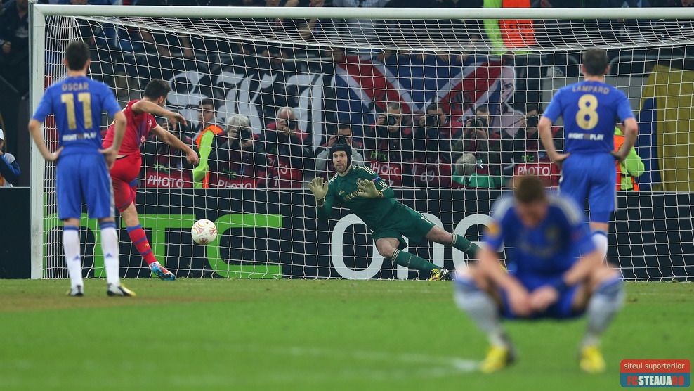07-03-13 Steaua - Chelsea 1-0 / Steaua, maiestuoasă în faţa deţinătoarei Ligii CampionilorSteaua s-a impus la limita, scor 1-0, in prima mansa a confruntarii cu Chelsea, din optimile de finala Europa League, dupa golul inscris de golgeterul Raul Rusescu in prima repriza ('34-penalty). Eroul calificarii cu Ajax, Iasmin Latovlevici, a fost si la originile acestui succes, dupa ce l-a lasat singur pe Raul Rusescu cu fundasul de banda Bertrand, nevoit sa comita fault in careu. Steaua a dominat Chelsea, campiana Europei neavând nici o șansă reală de gol.Prima repriza dintre Steaua si Chelsea a fost una de uzura, in care ros-albastrii au jucat cu cap, atacand prudent poarta lui Petr Cech. In minutul 5, Alexandru Chipciu a dat tonul cu un sut timid, pentru ca “albastrii” sa intre la conducerea partidei, dupa primul sfert de ora, printr-o serie de atacuri pozitionale. Cornel Rapa a furnizat o prima centrare de calitate, in minutul 30, din alergare, insa nu a fost sustinut de niciun coleg in fata portii oaspetilor. Trei minute mai tarziu, Steaua s-a desprins de adversar multumita unei centrari cu exteriorul a lui Latovlevici, continuata inspirat de varful impins Raul Rusescu, care a fost agatat de Bertrand in careul advers si arbitrul Seghei Karasev a fost nevoit sa arate punctul cu var. Spre finalul primei parti, Eden Hazard si Benayoun au combinat in viteza in careul ros-albastrilor, creand haos, doar interventia salvatoare a lui Ciprian Tatarusanu facand ca scorul sa ramana 1-0 pana la ultimul fluier (38’). Tot Tatarusanu avea sa o scoata pe Steaua si in minutul 42, cand a respins in corner sutul in forta al spaniolului Fernando Torres. Steaua lui Reghecampf nu s-a lasat mai prejos nici in repriza a doua, desi Chelsea a incercat prin toate mijloacele posibile sa puna presiune asupra portii adverse. In minutele 56 si 62, Cristi Tanase si-a continuat seara nefasta cu doua suturi imprecise, in timp ce Lampard l-a copiat pe Latovlevici, cu o minge aruncata peste intreaga defensiva a Stelei. Fernando Torres, insa, a fost prins cu spatele la poarta si Tatarusanu a respirat usurat. Cu un sfert de ora inainte de final, belgianul Hazard nu a putut profita de nesincronizarea in aparare a stelistilor, finalizand cu sut peste poarta. Rapa l-a testat cu un sut din afara careului pe Cech (80’), nou-intratul Marin l-a facut din nou “mare” pe Ciprian Tatarusanu (83’), iar David Luiz a sutat din lovitura libera putin peste transversala portii (85’). Asaltul “albastrilor” a intarziat sa mai vina si Steaua porneste cu un gol avantaj in returul de pe Stamford Bridge, programat sa se dispute saptamana viitoare. Onlinesport Steaua: Tătăruşanu - Râpă, Szukala, Chiricheş, Latovlevici - Bourceanu, Pintilii (Prepeliţă '58) - Ad. Popa, Chipciu, Tănase (Tatu '82) - Rusescu (Gardoş '90+2). Antrenor: Laurenţiu Reghecampf. Chelsea: Cech - Ivanovici, David Luiz, Terry, Bertrand - Obi Mikel, Lampard - Benayoun (Mata '64), Oscar, Hazard (Marin '75) - Fernando Torres. Antrenor: Rafael Benitez. INAINTE DE MECI: Campioana en-titre a Europei a ajuns in Europa League dupa ce au terminat pe locul al treilea o grupa de Liga Campionilor cu Juventus Torino, Sahtior Donetk si FC Nordsjælland: ![]() In "16"-imile de finala ale Europa League, prima detinatoare a Champions League care a ratat calificarea in "optimi" a eliminat-o pe Sparta Praga (1-0 in deplasare - Oscar '82 - si 1-1 acasa - Hazard '90+2 / Lafata '17). Acesta este primul meci din istorie intre cele doua echipe, al doilea al lui Chelsea in Romania (0-0 la Cluj, dupa betia lui Drogba & comp. din noaptea din 30 septembrie-1 octombrie 2008) si al saptelea al Stelei, la Bucuresti, cu o echipa din Anglia: ![]() ![]() La conferinta de presa premergatoare jocului, Laurentiu Reghecampf a afirmat ca Steaua are mari sanse de calificare: "Din punctul meu de vedere, consider că avem şanse foarte mari să ne calificăm mai departe şi pot argumenta acest lucru. Toţi jucătorii sunt sănătoşi, au ajuns la un nivel de pregătire foarte ridicat, ceea ce îmi dă încredere. Dar aceste meciuri din Liga Europa sunt speciale şi nu trebuie să uităm că sunt două meciuri şi indiferent de rezultatul de mâine seară există un meci retur. Aşa cum s-a întâmplat şi la meciul cu Ajax, unde noi nu aveam nicio şansă din partea nimănui, am reuşit să ne calificăm. Calificarea, cu siguranţă că se va juca la Londra. Dacă vom reuşi să nu primim gol, cu siguranţă vom avea şanse mari de calificare. Sunt foarte bucuros că am reuşit să ajungem la acest nivel. Pentru mine este un joc foarte important, o etapă din viaţa noastră ca echipă. Sper foarte mult să reuşim să trecem în următorul tur. Nu cred că pentru noi e important cu cine jucăm. Orice echipă este foarte puternică în acest moment. Numele Chelsea impune respect. Suntem foarte mulţumiţi pentru că în primul rând am reuşit să recuperăm jucătorii şi am pregătit anumite lucruri. Avem o singură absenţă şi aceea este Nikolici, care probabil că în următoarele zile va suferi o intervenţie la genunchi. E o problemă mai veche, care din păcate în ultimul timp s-a agravat şi necesită o intervenţie chirurgicală. În rest toţi jucătorii sunt valizi. Nu există o dilemă pe partea dreaptă. Noi nu avem niciun fel de problemă pe partea dreaptă. Fiecare jucător ştie exact ce are de făcut la meciul de mâine. Nu ne-am propus niciodată să schimbăm anumiţi jucători de pe un post pe altul. Vlad Chiricheş va juca fundaş central, pentru că acolo îi este locul şi acolo ne ajută cel mai mult. Pentru mâine, pe partea dreaptă, intră în schema noastră doar doi jucători, Râpă şi Chipciu". Declaratiile politicoase ale lui Rafael Benitez au fost luate drept laude de presa romana: "Ştiam că Steaua are jucători buni, talentaţi şi care stau bine din punct de vedere tactic. Am văzut nişte imagini cu Steaua, am văzut că echipa face pressing ri