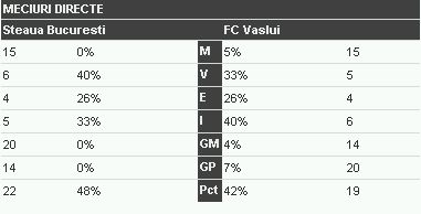 STEAUA - FC Vaslui 1-0 VIDEOSteaua a mai luat trei puncte în cursa pentru titlul de campioană, dar elevii lui Laurențiu Reghecampf n-au avut o misiune tocmai ușoară cu FC Vaslui.Cu o formație care în primul minut nu i-a numărat pe Raul Rusescu, Mihai Pintilii, Lukasz Szukala, toți patru menajați pe bancă după efortul imens depus în dubla cu Chelsea din Europa League, plus Cristi Tănase în tribună, roș-albaștrii n-au izbutit să alunge total impresia de oboseală pe care au lăsat-o în cea de-a doua repriză a partidei pierdute cu 1-3 la Londra. Steliştii au venit la meciul cu Vaslui cu emblema titlului 24 inscripţionată pe piept. Dacă au lipsit mai mulți titulari, Steaua l-a avut în schimb pe teren din primul minut în premieră pe puştiul Gabi Iancu. Suspendat, Hizo a dat indicaţii cu succes din tribună. În absenţa lui Sânmărtean, Nicuşor Stanciu a fost aproape să deschidă scorul în minutul 20. Golul de trei puncte al steliştilor a venit chiar înainte de pauză. Chipciu a finalizat excelent o pasa lui Iancu. Intrat după pauză, Rusescu a cerut penalty, dar nu a primit nimic de la brigada de arbitri din Slovacia. Tot golgeterul Rusescu a încercat fără succes să-şi treacă numele pe tabelă în minutul 54. Vasluiul putea să egaleze în minutul 79, însă Raul Costin a ratat din şase metri. Echilibrul s-a rupt cu 7 minute înainte de final. Căpitanul Milanov a văzut al doilea galben şi a fost trimis la cabine. Victoria cu Vasluiul a fost a cincea consecutivă în campionat pentru stelişti, care rămân la 12 puncte în faţa Astrei. DigiSport Inainte de meci: Statistica meciurilor dintre cele doua echipe: ![]() Vasluienii nu au castigat decat un singur meci la Bucuresti, anul trecut, in Ghencea, cu 1-0. Golul a fost marcat de Wesley ('60), un alt dubios care a ras cu pofta (de mai multe ori!!!) la planurile Indezirabilului de a cuceri Europa cu "zece mii pe luna". Ultima victorie a Stelei in fata Vasluiului a fost un 3-0 in fieful alb-verzilor, in 22 august 2010, iar ultima victorie la Bucuresti a avut loc in 29 noiembrie 2009, un 2-1 (goluri Kapetanos si Szekely). La noi, antrenor era Mihai Stoichita, la ei, Marius Lacatus. GSp sustine ca Reghecampf şi Viorel Hizo s-au mai întîlnit o singură dată ca rivali pe banca tehnică, atunci cînd "Dulăul" era tot la Vaslui, iar Reghe tehnicianul Universităţii Craiova. Hizo a ieşit învingător din acel duel, scor 2-1. Chiar dacă a fost "principal" la patru formaţii, Gloria Bistriţa, U Craiova, Chiajna şi Steaua, Reghecampf nu a reuşit să scoată nici măcar un punct împotriva galben-verzilor. Mai mult, în ultimele două jocuri, disputate în Moldova, formaţiile lui Reghe au încasat 7 goluri. Hizo mai are un atu în această seară. Ultima dată cînd a cedat în faţa roş-albaştrilor s-a întîmplat pe 9 decembrie 2007, cînd Ceahlăul pregătit de venerabilul antrenor pierdea la limită, 0-1. De atunci, nea Viorel a mai întîlnit Steaua de 5 ori, de 5 ori cu FC Vaslui şi de două ori cu Rapid, şi nu a mai pierdut! Steaua nu a mai cîştigat o partidă disputată contra Vasluiului din 22 august 2010, atunci cînd s-a impus cu 3-0 în deplasare, iar după acel meci s-au mai jucat 4 întîlniri, două remize şi două victorii pentru moldoveni. 2 înfrîngeri a suferit Steaua în acest sezon, ambele în deplasare, 1-3 atît la Vaslui, cît şi la Braşov 2 victorii a înregistrat FC Vaslui pe teren străin în stagiunea curentă, la Bistriţa şi la Dinamo ![]() FCSTEAUA.RO este un site deschis, facut de suporteri, pentru suporteri. Asteptam articolele scrise de voi, daca aveti ceva de spus si credeti ca o puteti face intr-un articol, nu ezitati!