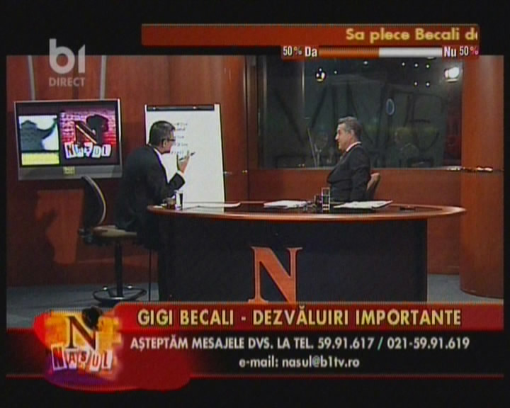 21-09-09 Becali contestat la "Nasul"Suporterii Stelei nu dorm! Participant la emisiunea "Nasul" de la b1TV, patronul Stelei a avut surpriza de a fi contestat in direct, pe geamul din spatele studioului aparand mesajul "Vinde Steaua".![]() |