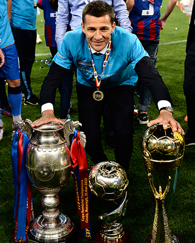 Clubul nostru isi exprima recunostinta pentru performantele extraordinare reusite de catre acesta prin cucerirea „Triplei” Campionat-Cupa Romaniei-Cupa Ligii inca din primul sezon la carma echipei, performanta unica in fotbalul romanesc.
