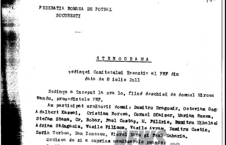 Sportnews.ro publică o serie de stenograme dintr-o şedinţă a Comitetului Executiv al FRF din 8 iulie 2011. Problemele din fotbalul românesc legate de pariuri și arbitrajele eronate, însă nepedepsite pe măsura greşelilor, par să-și fi găsit acum explicația chiar în sânul conducerii Federaţiei Române de Fotbal (FRF).