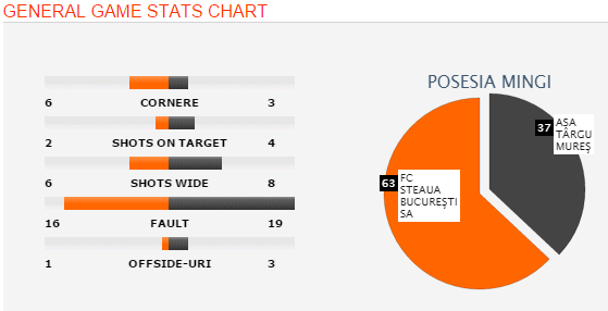 În prima parte, roș-albaștrii au dominat, şi-au creat ocazii şi au reuşit să marcheze prin Adi Popa (min. 32). Steaua a presat, a deschis jocul pe flancuri, a centrat in careu pentru Tade, însă atacantul pare doar o umbră a golgheterului Ligii 1 din sezonul trecut. A dat assist-ul lui Adi Popa și cam atât.