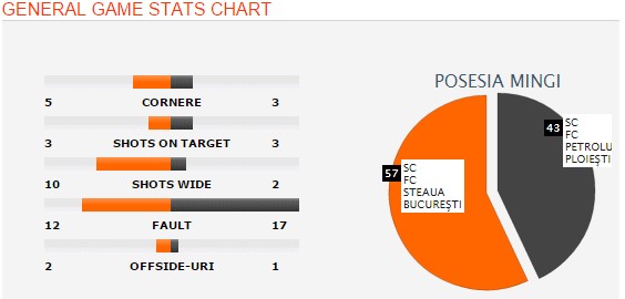 Steaua, desi a avut o posesie superioara, a incheiat prima repriza fara sut trimis pe spatiul portii aparate de brazilianul Peterson Pecanha. In minutul 59, Nicusor Stanciu a fost destul de aproape sa il surprinda pe goalkeeperul Petrolului cu o executie printre picioarele lui Filip, de la aproximativ 20 de metri.