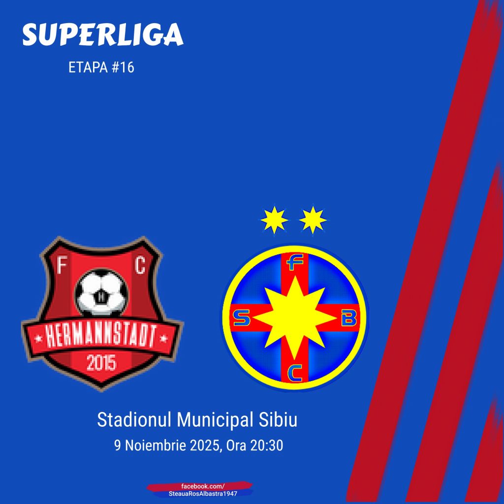 Meciul dintre FC Hermannstadt și FC Steaua se va disputa duminică, 9 noiembrie 2025, de la ora 20:30, pe Stadionul Municipal din Sibiu, în cadrul etapei a 16-a, prima din returul sezonului regulat al SuperLigii României. Partida va fi transmisă în direct pe posturile TV Prima Sport și Digi Sport.