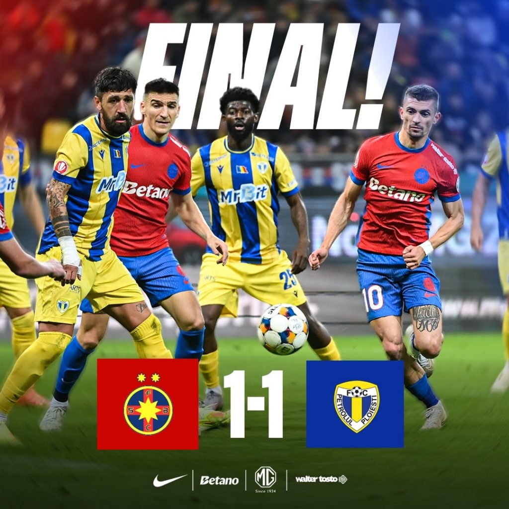 Alexandru Stoian a deschis scorul pentru roș-albaștri în minutul 11, la capătul unei acțiuni superbe pe axa Octavian Popescu – Risto Radunovic, iar lucrurile păreau să meargă în direcția potrivită pentru Campioni. Egalarea a venit în minutul 47, după un șut deviat al lui Sălceanu, care l-a surprins pe Ștefan Târnovanu, iar Petrolul a plecat cu un punct de pe Arena Națională, în condițiile în care raportul ocaziilor a fost 8-2 pentru gazde.