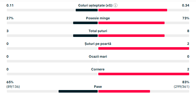 Trebuie precizat că statistica arăta cam la fel și în prima repriză, când se juca 11 la 11.