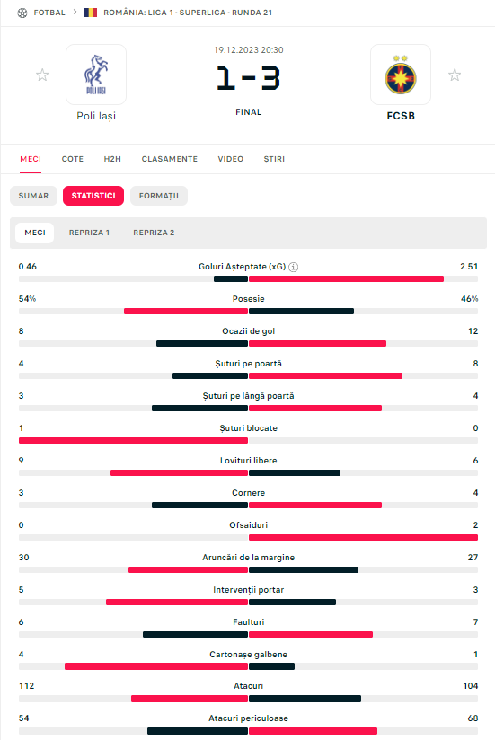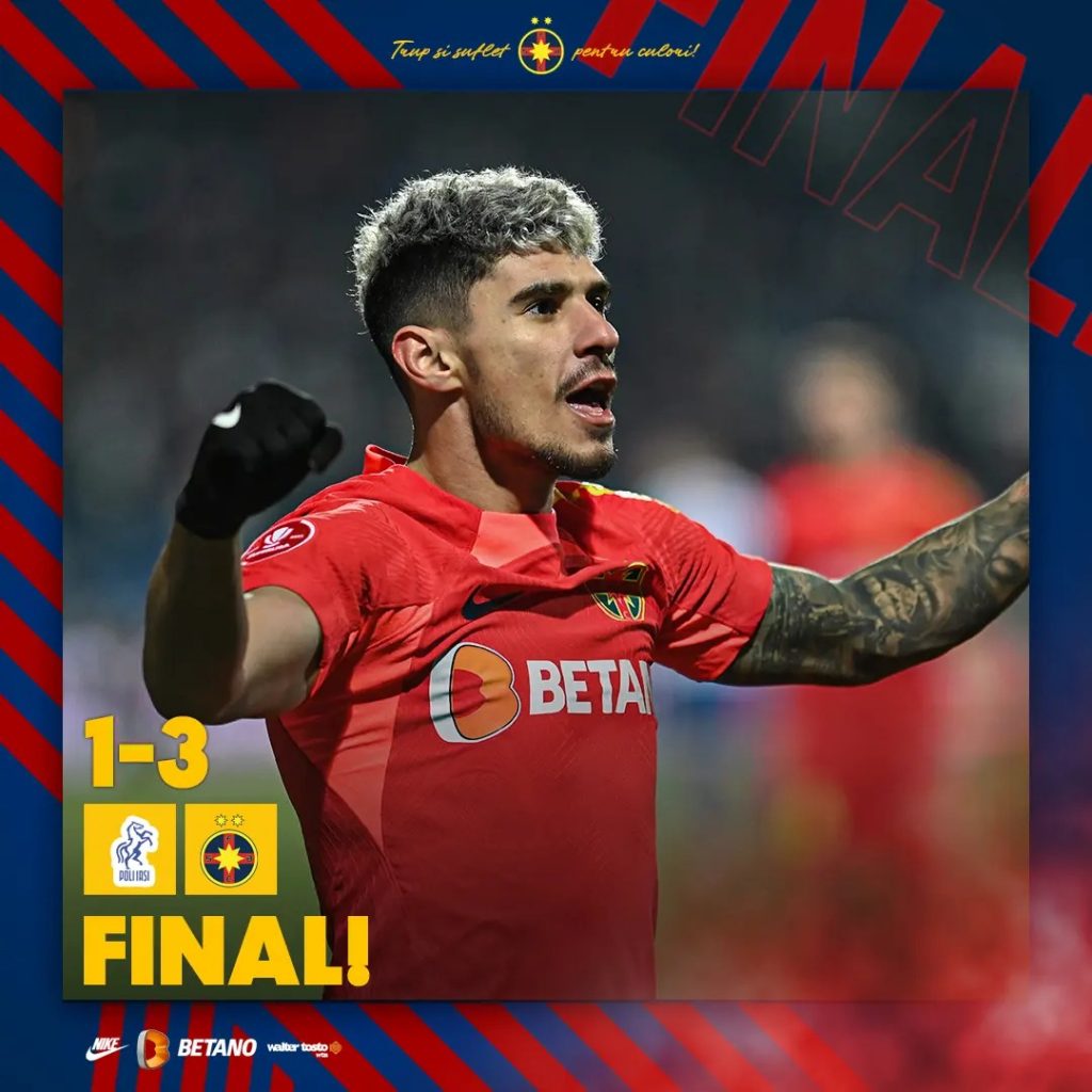 Steaua din Liga 1 termină en fanfare anul 2023 cu o victorie categorică în Copou și își consolidează poziția de lider al Superligii la 8 puncte distanță de CFR Cluj și 10 puncte fașă de CSU Craiova.