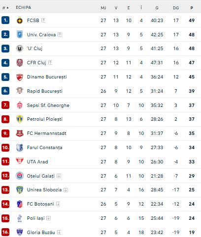 Grație acestui succes, FC Steaua a acumulat 49 de puncte și a urcat pe prima poziție în clasament.