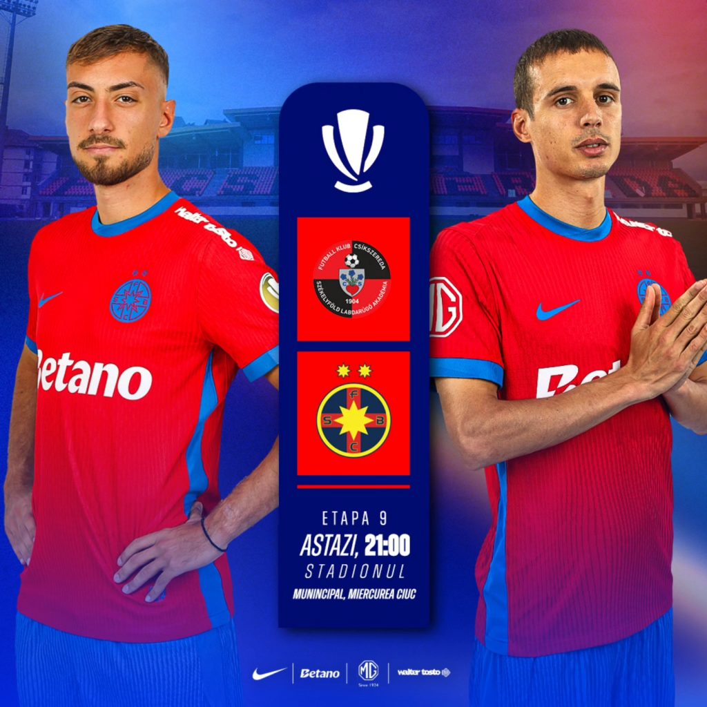 Meciul FC Csikszereda vs FC Steaua se dispută astăzi, 14 septembrie 2025, de la ora 21:00, pe Stadionul Municipal din Miercurea Ciuc. Partida din etapa a noua se va transmite la TV pe Digi Sport 1 și Prima Sport 1.