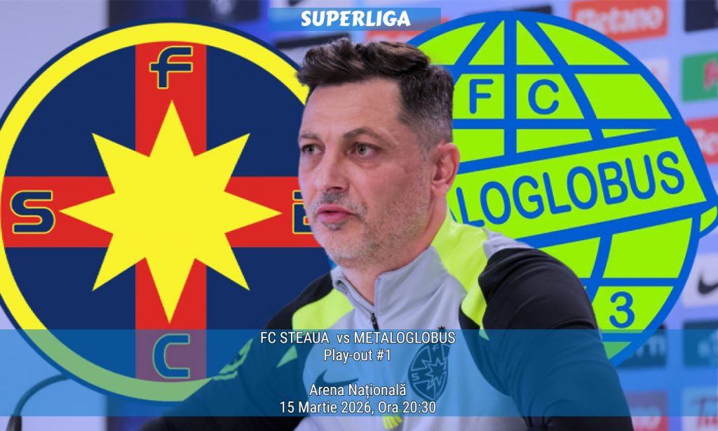 Partida FC Steaua – Metaloglobus se va juca pe Arena Națională din București duminică, 15 martie, de la ora 20:30. Partida, ce contează pentru prima etapă a play-out-ului Superligii României, va fi transmisă în direct de posturile Digi Sport 1 și Prima Sport 1.