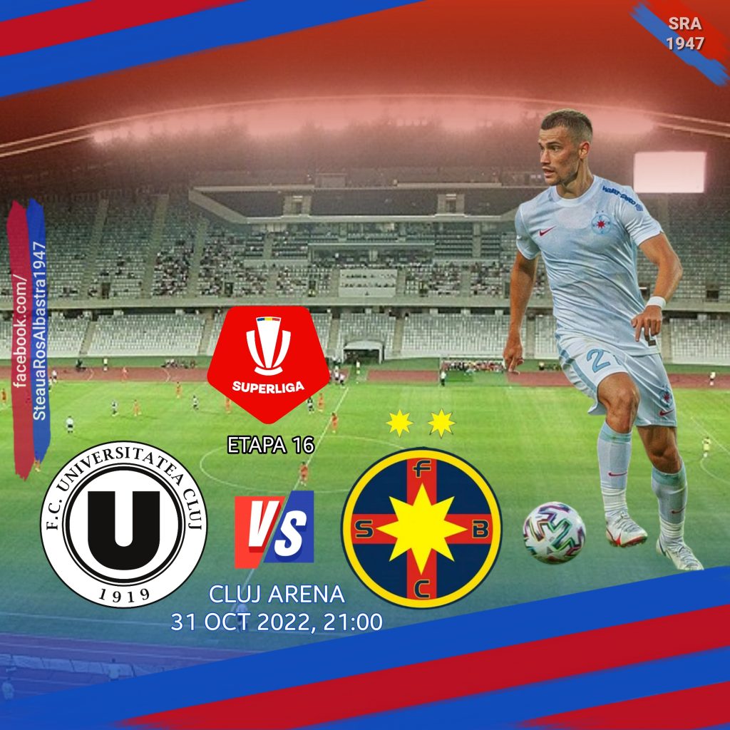 ⚽️?Etapa cu numărul 16 din acest campionat își trage cortina după partida de pe Cluj Arena, acolo FC Steaua vine să se dueleze cu Universitatea, luni, 31 octombrie 2022, de la ora 21:00.