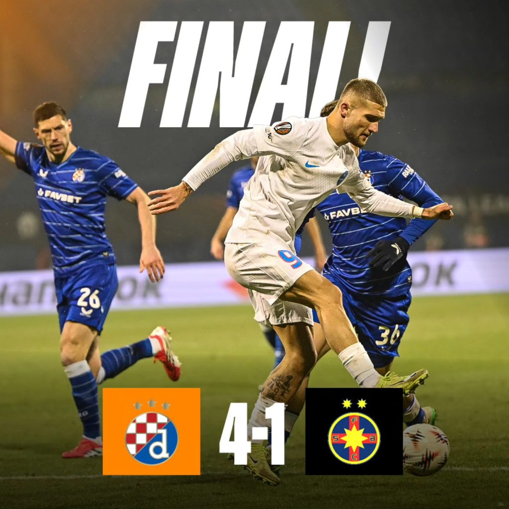 De asemenea, croații au mai cedat cu 4-0 pe terenul lui Lille și cu 0-3, acasă, contra Celtei Vigo. După șase meciuri jucate în Europa League, Dinamo Zagreb se află pe locul 25 în clasament, cu 7 puncte, la egalitate cu Celtic și Ludogoreț.