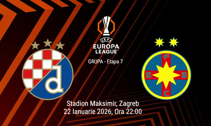 Partida Dinamo Zagreb – FC Steaua se va juca pe Stadion Maksimir din Zagreb, joi, 22 ianuarie 2026, de la ora 22:00, în cadrul rundei cu numărul 7 a fazei principale din Europa League. Partida se va transmite la TV pe două posturi: Prima Sport 1 și Digi Sport 1 .