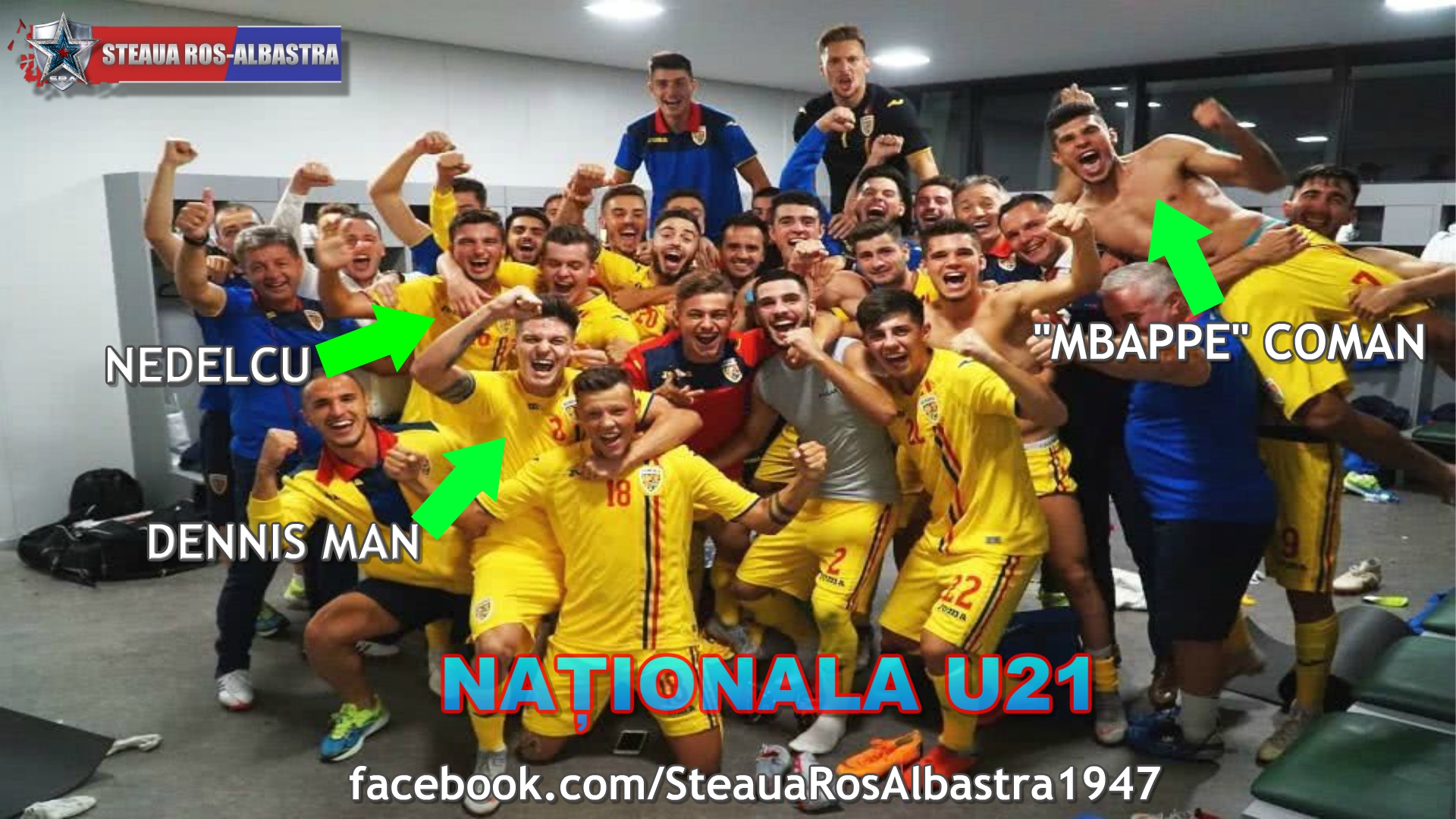 ROMÂNIA U21: 1. A. Radu (Cpt.) – 2. Boboc, 4. Nedelcearu, 5. Pașcanu, 3. Fl. Ștefan (22. Fl. Borța, 90) – 16. Dr. Nedelcu, 17. Cicâldău – 8. Man (20. A. Ciobanu, 90+7), 10. Hagi (18. Ad. Rus, 76), 7. Fl. Coman – 9. A. Ivan. Selecționer: Mirel Rădoi. Rezerve: 12. Căbuz, 11. Ad. Petre, 14. Oaidă, 15. Mățan.
