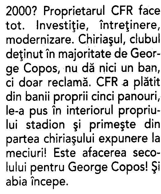Aceasta este declaraţia lui George Copos care a produs, în toamna lui 2002, următoarea anchetă a celor de la ProSport: